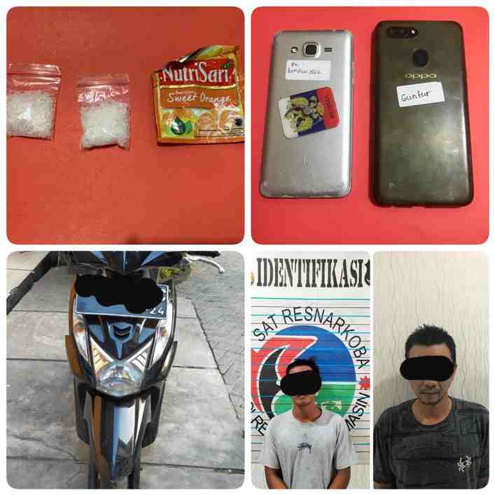 Dari tangan mereka ditemukan dua paket Sabu berat 9,64 Gram yang mau diantar ke suatu tempat. Selain barbuk narkoba itu juga disita satu bungkus plastik Nutrisari, satu Sepeda Motor Honda Beat warna hitam dengan nopol DA 6429 TC.