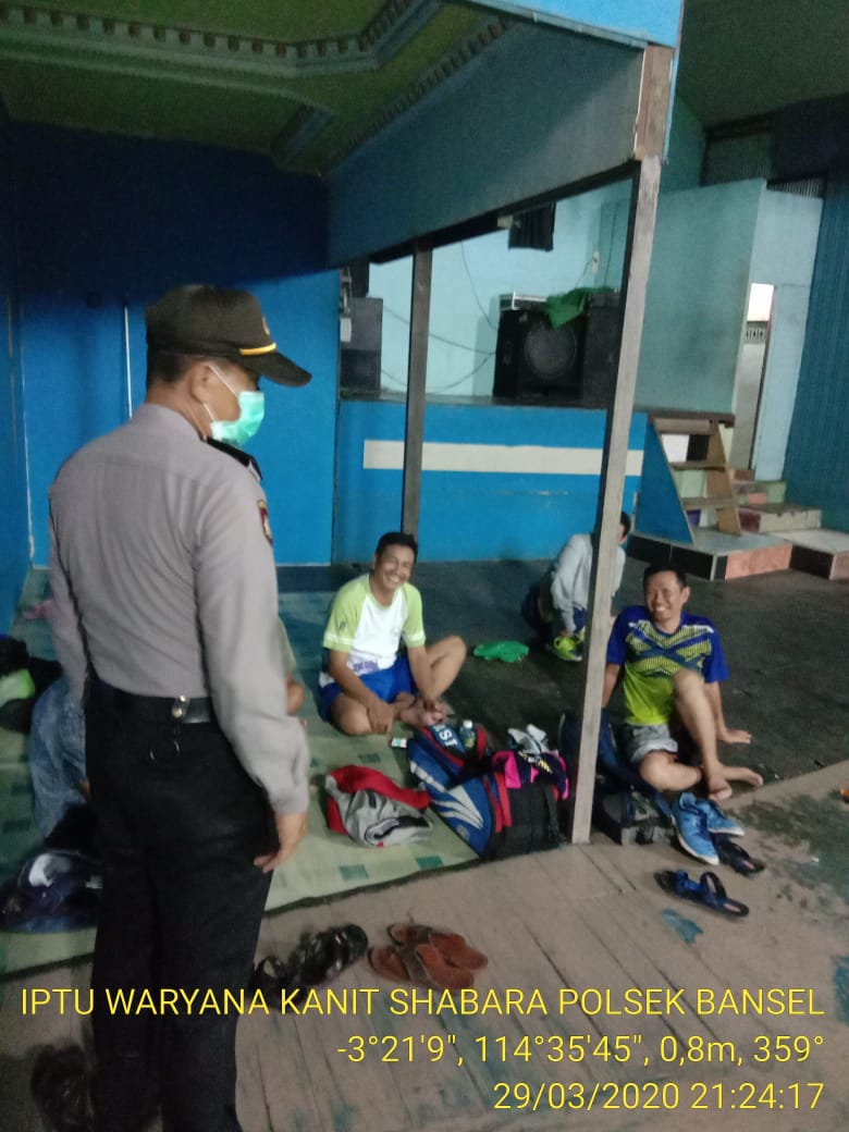 Banjarmasin, BARITO – Anggota Polsek Banjarmasin Selatan membubarkan warga yang main bulu tangkis, Minggu (29/3/2020) malam. Tindakan tegas sebagai upaya dukungan terhadap pemerintah menggalakan upaya pencegahan penyebaran virus Corona, dengan melarang tempat berkumpul di keramaian.