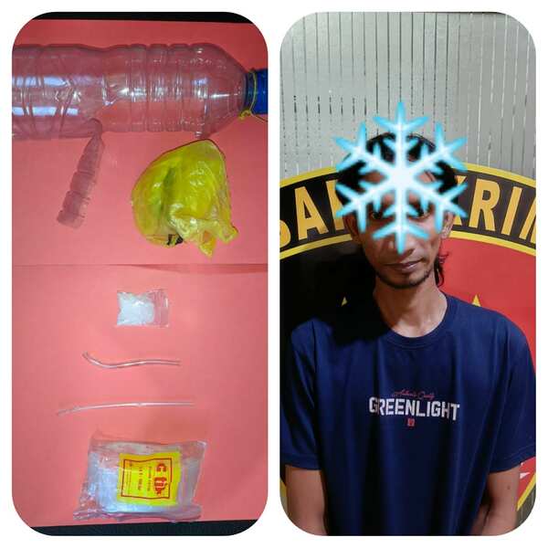 Selanjutnya polisi menemukan barang bukti (barbuk) narkoba satu paket Sabu-sabu berat 4,23 Gram. Termasuk peralatan hisapnya yakni satu botol air mineral pada bagian samping dalam keadaan terbuka.