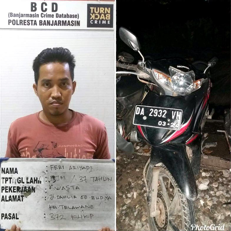 Pihak Reskrim Polsek Banjarmasin Barat pun memburu pelaku yang menggelapkan motor korban pembuatan 2011 itu. Ironisnya menurut keterangan pelapor sepeda motor yang dipinjam namun belum dikembalikan itu barang inventaris kantor .