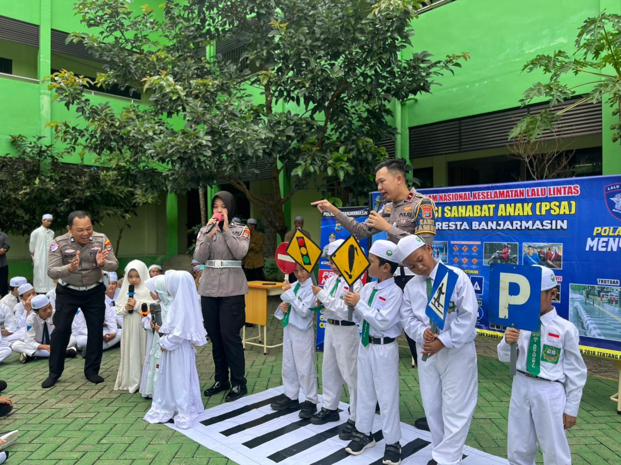 Personel Unit Kamsel Satlantas Polresta Banjarmasin pun disambut antusias karena personil yang ramah dan penuh ceria menjadi Polisi Sahabat Anak (PSA). Para pelajar pun semangat dalam mengikuti petunjuk dan imbauan agar siswa dan siswi selamat di jalan raya hingga pergi maupun kembali ke rumah.