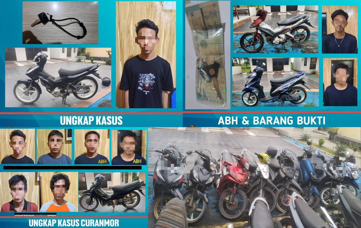 Pelaku itu yakni dua Anak Berhadapan dengan Hukum (ABH) berinsial MR (17) dan AR (17), kemudian FI (18), SS (18) dan MY (18). Setelah berhasil meringkus mereka satu persatu, hingga polisi menemukan barang bukti sebanyak delapan motor dari dua penadah.