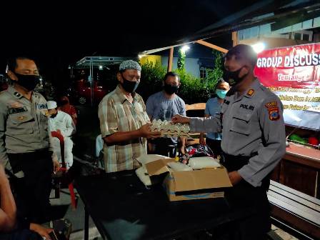 Kassubag Humas Polres Batola IPTU Abdul Malik mengatakan sesudah dilaksanakan kegiatan FGD juga dilaksanakan pembagian masker dan pembagian sembako dari Sat Binmas Polres Batola kepada warga masyarakat Desa Tatah Mesjid RT.18 Kec. Alalak Kab. Batola.