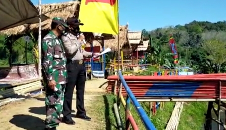 Dalam rangka memutus mata rantai penyebaran Covid-19 anggota Bhabinkamtibmas Polsek Batu Benawa dan Babinsa Koramil 1002-07/Pagat aktif mensosialisasikan Peraturan Bupati (Perbup) HST No: 34/2020 tentang Penerapan Disiplin dan Penegakan Hukum Protokol Kesehatan sebagai upaya pencegahan dan pengendalian Corona Virus Disease 2019 (Covid-19) di obyek wisata Riam Bajandik, Sabtu (22/8/2020).