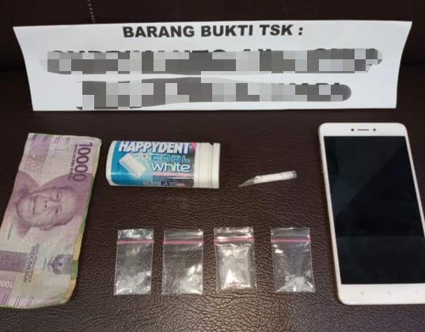 Berdasarkan informasi tersebut kemudian dilakukan penyelidikan dan berhasil mengamankan Pelaku dan pada saat dilakukan penggeledahan berhasil menemukan barang bukti berupa 4 (empat) paket yang diduga sabu-sabu yang dibungkus dengan plastik klip warna bening dengan berat bruto 1,55 (satu koma lima lima) gram, 1 (satu) lembar plastik klip warna bening, 1 (satu) buah serok yang terbuat dari sedotan warna bening yang didalamnya terdapat gulungan tisu warna putih, 1 (satu) buah wadah bekas permen merk Happydent warna putih, 1 (satu) buah handphone merk Xiaomi warna putih dan uang tunai sebesar Rp70.000,- (tujuh puluh ribu rupiah).