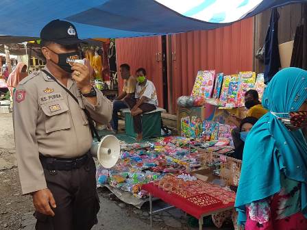 Adaptasi kebiasaan baru saat pandemi covid-19 ini terkadang masih jadi kendala bagi warga dalam menerapkan prosedur kesehatan untuk cegah tangkal penyebaran virus corona (covid-19), untuk itu personil Polres dan para Kapolsek bersama anggota turun langsung datangi kerumunan warga yang tidak pake masker saat mereka beraktifitas diluar rumah terutama kerumunan orang banyak, baik di pasar dan rempat lainnya, mereka yang mencari nafkah dan lain sebagainya.