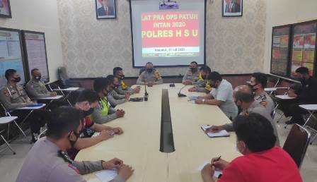 Lat pra Ops dipimpin langsung Kapolres HSU AKBP Pipit Subiyanto, S.I.K,.M.H Dalam rangka persiapan pelaksanaan Operasi Patuh Intan 2020, yang menurut rencana akan dilaksanakan selama 14 hari mulai tanggal 23 Juli sampai tanggal 05 Agustus 2020 mendatang.