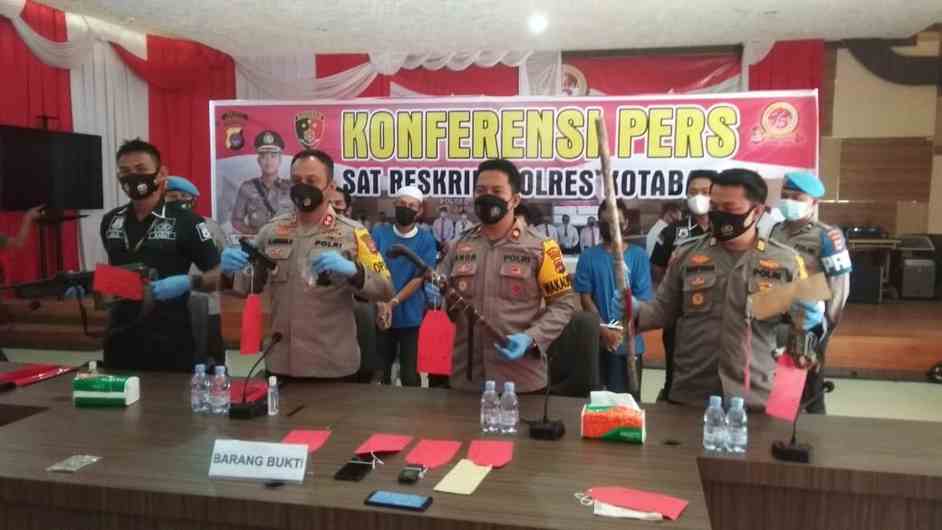 Sementara itu barang bukti yang diamankan 1 pucuk senpi laras panjang rakitan, 1 pucuk pistol , sebilah parang dan sebatang kayu.