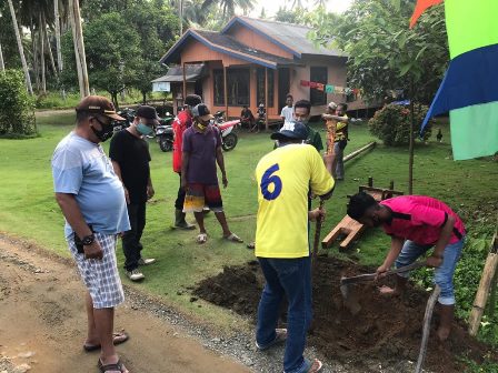 juga turut mengajak masyarakat sekitar Pos Check Point untuk ikut membantu pemasangan Portal tersebut dalam rangka mempersiapkan Desa Pudi menjadi Kampung Tangguh Banua.