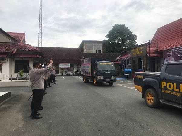 Dalam pengiriman bantuan dari Polres Kotabaru ke Kabupaten Hulu Sungai Tengah didampingi Kasat Samapta Polres Kotabaru AKP. Sutrisno, SH, MH.