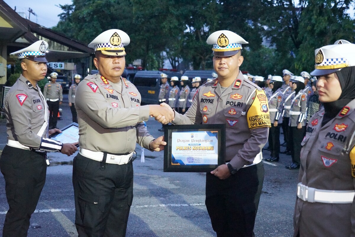 Kasat Lantas Polres Kotabaru hadir menerima penghargaan bertempat di lapangan apel ditlantas polda kalsel.