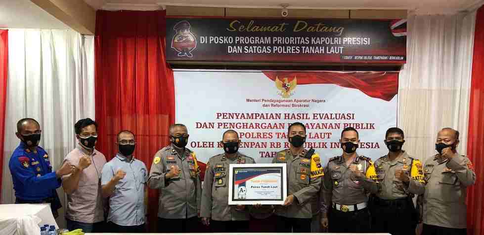 Pelaihari,BARITO – Menteri Pendayagunaan Aparatur Negara dan Reformasi Birokrasi (Kemenpan RB) Tjahjo Kumolo memberi penghargaan kepada pihak kepolisian, baik Polres, Polresta, maupun Polrestabes, yang meraih predikat A atau Pelayanan Prima.