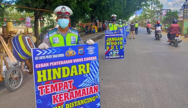 Di samping memberikan bantuan masker secara gratis personil Lantas Polres Tanah Bumbu juga menyampaikan himbauan kamtibmas kepada setiap orang yang di beri masker tersebut.