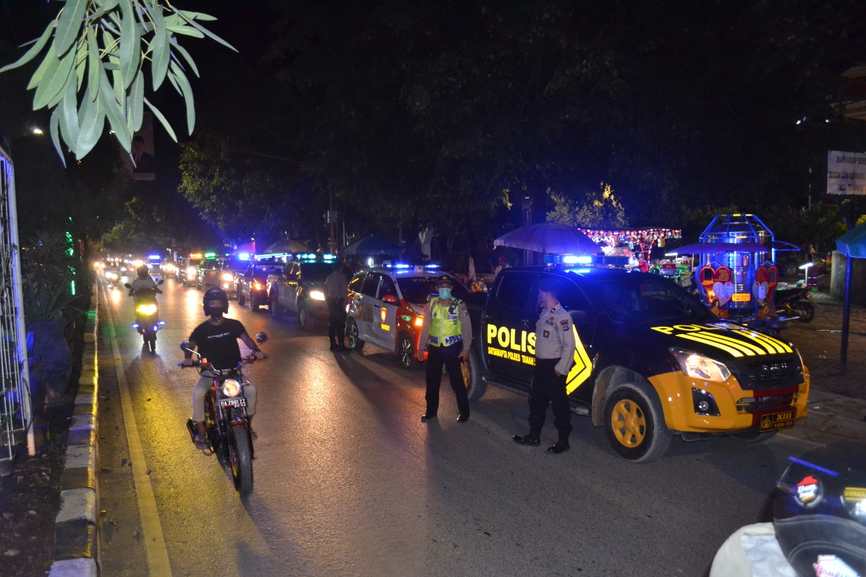 Dengan memanfaatkan sarana kendaraan dinas masing-masing, personil gabungan melaksanakan patroli di jalan raya, dimulai dari Mako Polres Tanbu, Jalan Raya Serongga, Desa Gunung Antasari hingga Taman Education Park Pasar Minggu yang berada di Desa Sejahtra Simpang Empat.