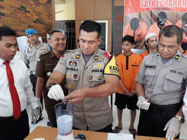 Usai gelaran konferensi pers, jajaran Sat Narkoba dipimpin Kabag Ops Kompol Dolly M Tanjung, yang juga dihadiri dari Kejaksaan Negeri Batulicin disaksikan puluhan awak media memusnahkan barang haram tersebut dengan cara diblender. (Hal)