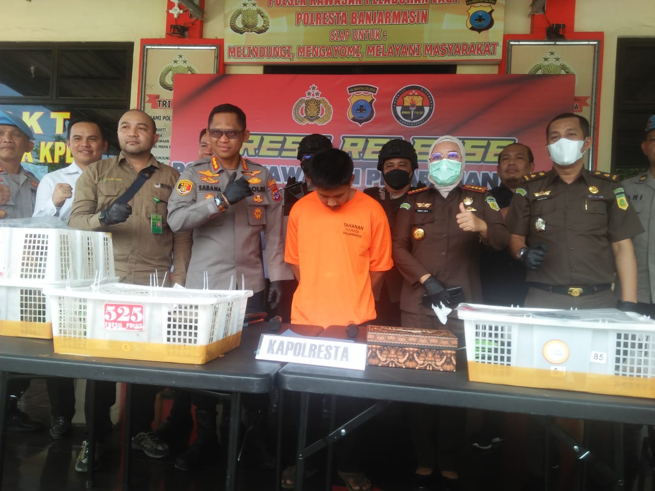 Banjarmasin, BARITOPOST.CO.ID – Kapolresta Banjarmasin, Kombes Pol Sabana Atmojo menggelar pengungkapan tindak pidana penyelundupan jual beli hewan atau satwa dilindungi yang ada wilayah hukumnya, Rabu (13/9/2023) pagi.