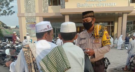 “Untuk giat pengamanan ini kami juga memberikan imbuan kepada masyarakat untuk tetap menjalankan dan mempedomani Protokol Kesehatan pencegahan dan Penularan Covid-19 yang tentunya dengan cara humanis. Bagi jam’ah yang tidak pakai masker iya kita ingatkan dan bersama pihak panitia mesjid juga memberikan masker kepada jaamah tidak memakai masker” ucap Imam Purbadi.