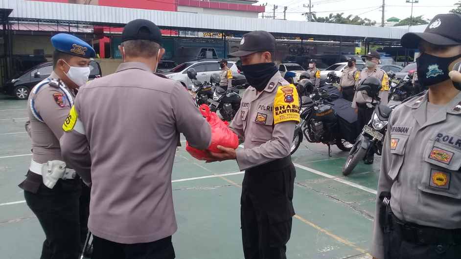 Usai pimpin Apel Gerakan Bhakti Sosial Polri Peduli Covid-19, Kapolresta Banjarmasin Kombes Pol Rachmat Hendrawan, membagikan kepada para Bhabinkamtibmas. Selanjutnya 52 BKTM itu mengantarkan kepada warga yang terdampak Covid-19 yang sudah terdata dan belum kebagian bantuan apapun.