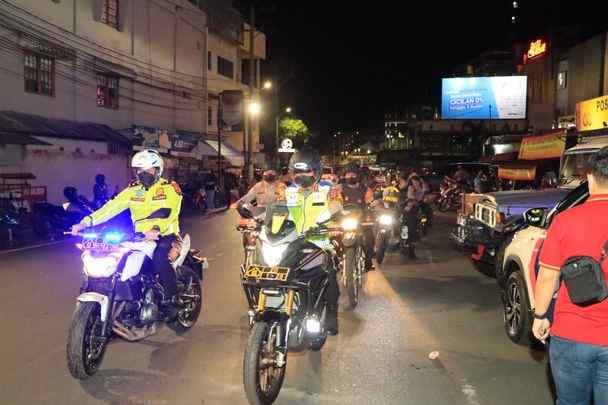 Banjarmasin, BARITO- Dengan menaiki roda dua, Kapolresta Banjarmasin, Kombes Pol Sabana A.ltmojo Martosumito, pimpin patroli presisi cipta kondisi, Selasa (03/0l5/2022) malam.