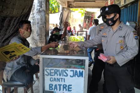 Selain mensosialisasi aturan tersebut, pihaknya juga membagikan masker gratis kepada pedagang dan pengunjung yang kedapatan tidak mengenakan masker.