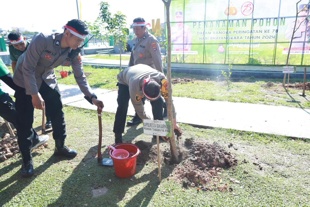 Banjarmasin, BARITOPOST.CO.ID – Sebuah taman atau lapangan terbuka hijau di kawasan Jalan Teluk Kelayan atau Muara Kelayan Kecamatan Banjarmasin Selatan saat ini belum dilengkapi pepohonan, Kamis (27/6/2024). Karena itu jajaran Polresta Banjarmasin melaksanakan penanam ribuan pohon di bantaran Sungai dekat PT PAL setempat.