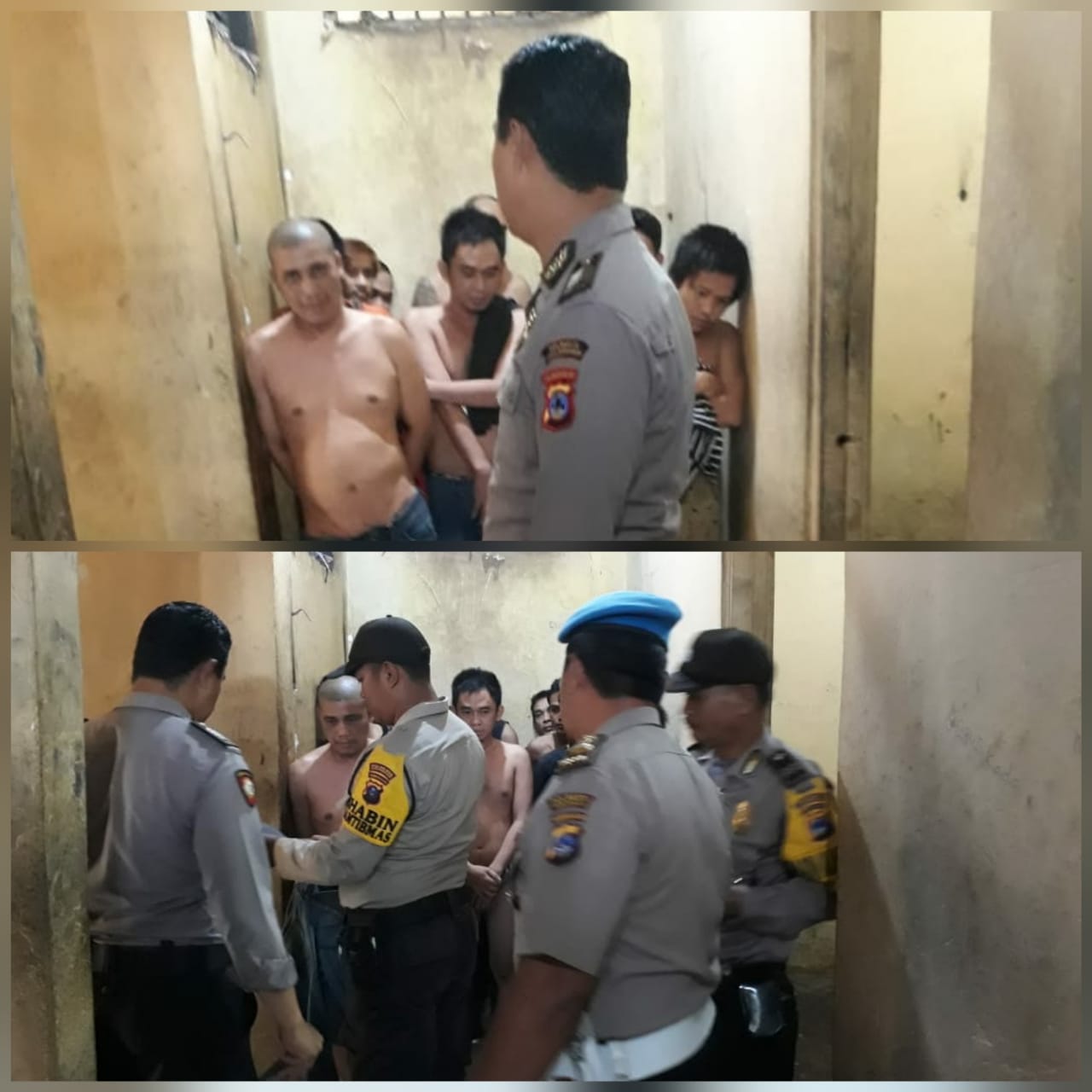 Di tempat berbeda, di sel tahanan Polsekta Banjarmasin Selatan menggelar aksi bersih-bersih. Nampak beberapa anggota buser mengeluarkan semua benda-benda seperti tikar dan peralatan gelas piring plastik.
