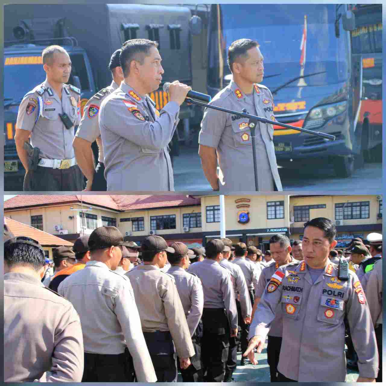 Terlihat pagi itu Kapolresta Banjarmasin memberikan arahan kepada personil dalam Latihan Dalmas. Tak hanya itu ia juga memperagakan simulasi penanganan situasional Unjuk rasa (Unras).