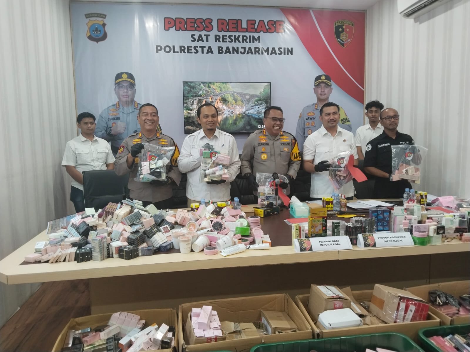 Kapolresta Banjarmasin Kombes Pol Cuncun Kurniadi mengatakan hal itu dalam Press Release Satrekrim Polresta Banjarmasin kepada awak media. “Jadi awalnya kita mau cek obat Lumbar Spine Cooling Gel dan dua lipstik merk Velvet Lip Glaze Lamela yang diperdagangkan lewat Shopee akun Vay Store dari pelaku wanita berinisial ETS (43),” bebernya.