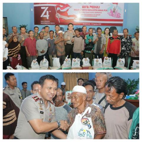 Ribuan warga di wilayahkan Kecamatan Banjarmasin Selatan (Bansel) menerima bantuan dari Aksi Peduli Polri dan Yayasan Baitul Maal (YBM)-PT PLN Berbagi 1000 Paket Sembako, Jumat (23/8/2019) pagi. Sembako itu diserahkan langsung Kadiv Humas Mabes Polri Irjen Pol Mohammad Iqbal dan Ketua III Yayasan Baitul Maal (YBM)-PLN H Heri Nasrudin PLN dan GM PLN Ulu Sari Indah Damayanti