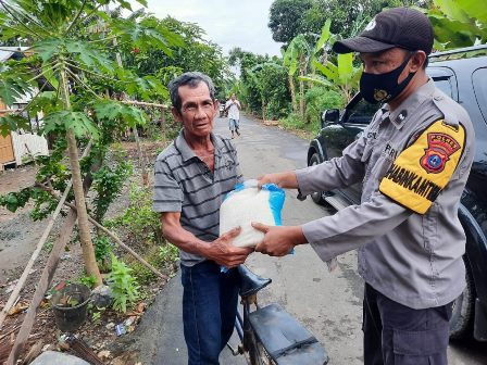Aipda Ruspian selaku Bhabinkamtibmas Desa Patih Muhur Kecamatan Anjir Muara melaksanakan program tersebut dengan memberikan bantuan berupa Beras masing-masing 5 Kg.