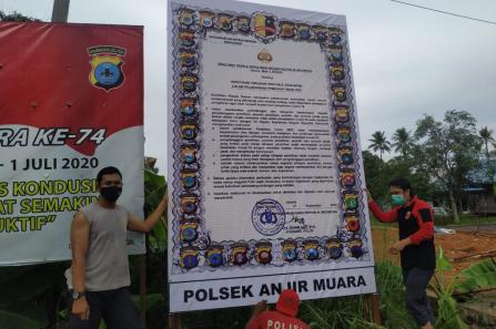 Polsek Anjir muara lakukan kegiatan sosialisasi maklumat Kapolri Nomor : Mak/3/IX/2020 Tentang Kepatuhan Terhadap Protokol Kesehatan Dalam Pelaksanaan Pemilihan Tahun 2020 di Daerah Hukum Polres Barito Kuala Polda Kalsel yang dilaksanakan oleh Polsek Anjir Muara Polres Batola itu Direktif Kapolda Kalsel Irjen Pol Dr Nico Afinta, S.I.K., S.H., M.H, Rabu (23/9/2020).