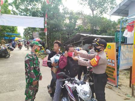 “Himbauan agar memakai masker kepada pedagang pasar untuk menggunakan masker, himbauan agar sering cuci tangan, membiasakan pola hidup sehat serta jaga jarak minimal 1 Meter,” tuturnya.
