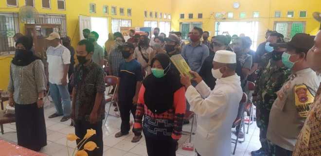 Polsek Banjarbaru Barat Sosialisasi Protokol Kesehatan di Pelantikan dan Sumpah KPPS