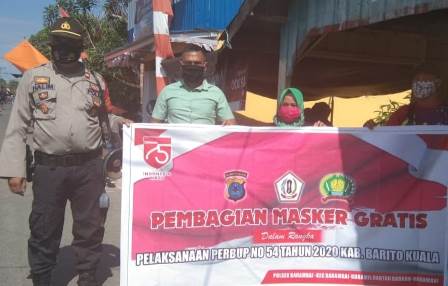 Kegiatan Sosialisasi pelaksanaan Perbup No 54 Tahun 2020 Polsek Barambai dalam rangka percepatan penanganan Corona Virus Disease 2019 (Covid 19) dan mendukung adaptasi kebiasaan baru masyarakat di Kab. Batola.