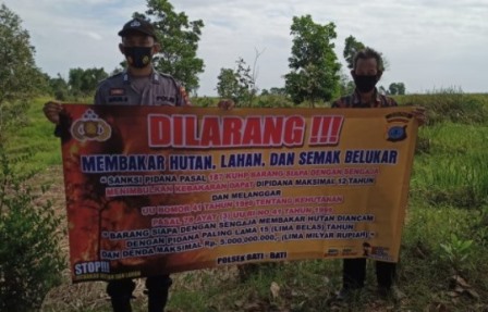 Dalam mengantisipasi kebakaran lahan serta hutan, anggota Polsek Bati Bati Polres Tanah Laut, gencarkan sosialisasi Karhutla di pemukiman penduduk Desa Benua Raya Kec. Bati Bati Kab. Tanah Laut.