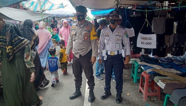 Polres HSU, Polda Kalsel – Berbagai upaya dalam penerapan dan Pendisiplinan Protokol Kesehatan (Prokes) Polres HSU dan Polsek jajaran semakin dencar adakan patroli dan Ops Yustisi sebagai upaya Pencegahan dan Pengendalian Covid-19 diantaranya pelaksanaan di pasar tradisional Kecamatan Danau Panggang Kab. HSU, Senin (04/1/2021).