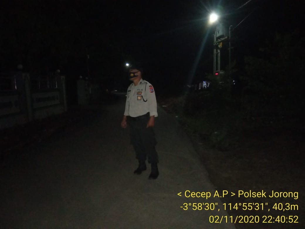 Seperti yang dilakukan personel piket Polsek Jorong bersama anggota melakukan patroli dialogis dengan warga di Desa Jorong, pusat kecamatan setempat, puskesmas dan tempat tempat objek Vital Seperti ATM BRI, Perumahan dan Perkantoran .
