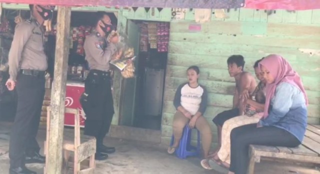 Polda Kalsel, Personel Polsek Karang Bintang Briptu I Ketut Suwarsana bersama Bripda Muhammad Syawal laksanakan kegiatan operasi Yustisi pendisiplinan masyarakat terhadap protokol kesehatan dalam penggunaan masker kepada masyarakat Desa Batulicin Irigasi Kecamatan Karang Bintang, Senin (12/10/2020).