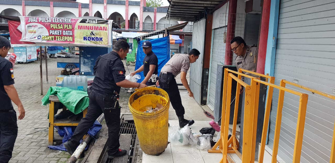 Hari Sampah Nasional, Polsek Ketapang bersama warga laksanakan kegiatan kerja bakti dengan membersihkan sampah sekitar Taman Kota Sampit dan Pasar Eks mentaya. (zainal/brt).