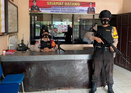 Piket Jaga Mako Polsek Mandastana Polres Batola Polda Kalsel yang di laksanakan oleh Anggota Mandastana siap melaksanakan Jaga Mako, dan pelayanan di Mako Polsek Mandastana, Sabtu( 29/8/2020).