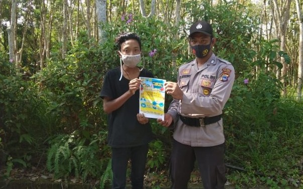 Dalam upaya mendukung kebijakan pemerintah di Era New Normal dan adaptasi kebiasaan baru Bripka Eko Aribowo berikan himbauan kepada warga Desa Sukadamai Kecamatan Mantewe Kab. Tanah Bumbu agar tetap mengikuti protokol kesehatan. Selasa (27/10/2020).