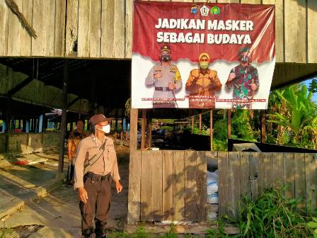 Kasubbag Humas Polres Batola IPTU Abdul Malik mengatakan kepada awak media pemasangan Spanduk Jadikan Masker sebagai budaya, Ayo Pakai Masker dilakukan oleh Kapolsek Mekarsari ditiap tiap tempat yang ramai aman dan lancar.