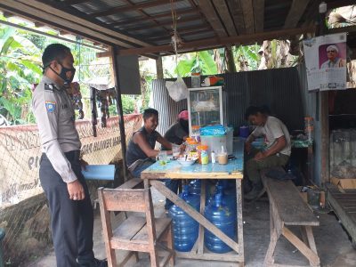 Polda Kalsel, Polsek Muara Harus – Bhabinkamtibmas Polsek Muara Harus himbau masyarakat pada hari Kamis(17/12/2020). Kali ini Bhabinkamtibmas Bripka Riza sekitar pukul 11.30 Wita, menyambangi masyarakat di warung kopi Rt.05 Kec.Muara Harus.