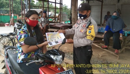 Lewat patroli , anggota Polsek Pelaihari sebar selembaran Peraturan Bupati serta menghimbau masyarakat untuk tetap menerapkan protokol kesehatan pencegahan Covid-19 dengan selalu mengenakan masker yang baik dan benar. Dan selalu menjaga jarak saat beraktivitas di tempat umum serta cuci tangan sesering mungkin ditempat yang telah disediakan.