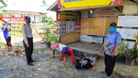 “Dalam kegiatan Ops Yustisi bersama ada masyarakat yang masih lalai ditemukan 3 orang tidak menggunakan masker, dan diberikan sanksi Teguran lisan, dan sangsi fisik berupa push Up serta diperintahkan kembali untuk mengambil Masker dan agar selalu mematuhi protokol kesehatan, “ katanya.