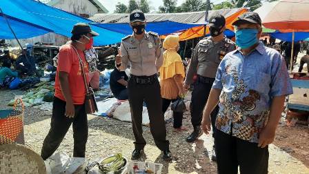 Polsek Rantau Badauh dalam rangka menekan penyebaran Covid 19 pada hari Jumat tanggal 18 September 2020 Ops Yustisi penegakan Perbub no 54 tahun 2020 yang dilaksanakan di Pasar Jumat Ds Danda jaya Kec. Rantau Badauh Kab.Batola Kalsel, Sabtu (19/9/2020).