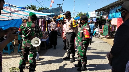 Dalam kegiatan pembagian masker kepada masyarakat di pasar gampa muara dilaksanakan oleh petugas gabungan dari Polsek Rantau Badauh bersinergi dengan Koramil Rantau Badauh dan Tim Konseling Informasi dan Edukasi Kab Batola.