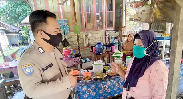 Bhabinkamtibmas Kec. Sungai Raya Bripka Morang memberikan edukasi mengenai Perbup HSS No. 44 th 2020 kepada masyarakat sembari melaksanakan berpatroli, Morang meminta kepada warga masyarakat agar tetap mematuhi protokol kesehatan guna memutus mata rantai penyebaran Virus Covid-19.