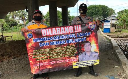 Personil Polsek Tabunganen melakukan kegiatan sosialisasi / binluh tentang adanya kebakaran hutan dan lahan diwilayah Kecamatan Tabunganen Bhabinkamtibmas Polsek Tabunganen Polres Batola Polda Kalsel Brigadir Priston Sirait melakukan sosialisasi / binluh kebakaran hutan dan lahan di Ds Sei Telan Tengah Kec Tabunganen Kab Batola, Senin (12/10/2020).