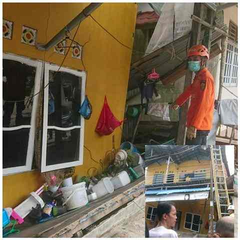 Bedakan bertingkat itu dihuni luma mahasiswa dan tiga kepala rumah tangga, diduga akibat pondasi parah bangunan yang berusia 15 tahun itu milik almarhum H Muhidin.